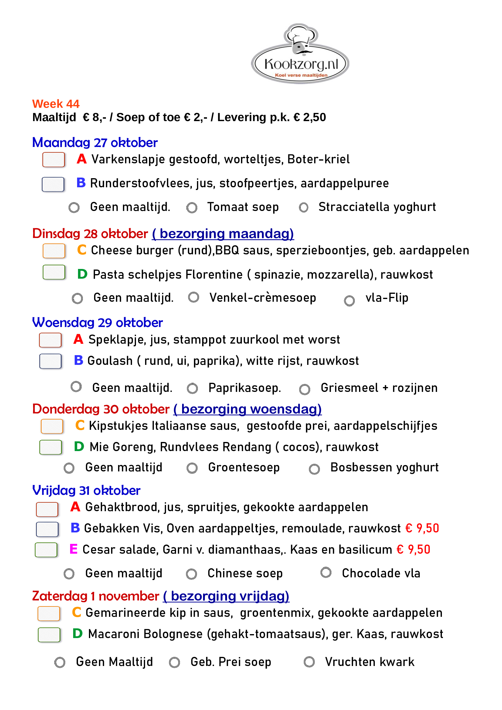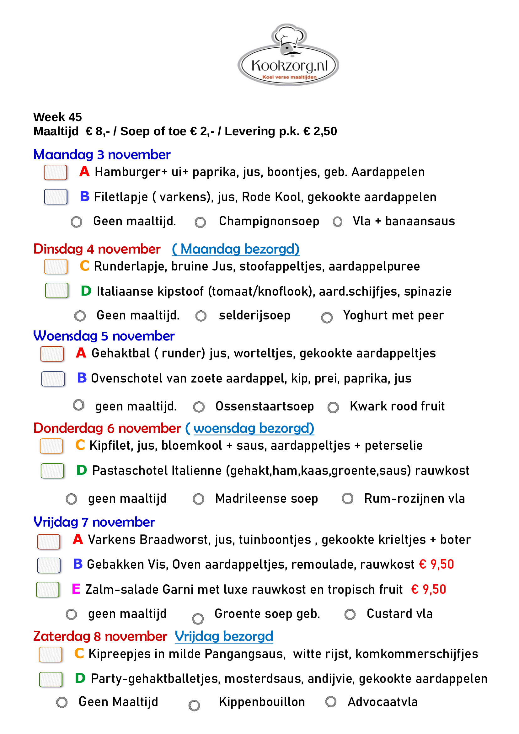 Informatie: Email: info@kookzorg.nl, tel.06-47667352 of bij geen gehoor 072-582 6421